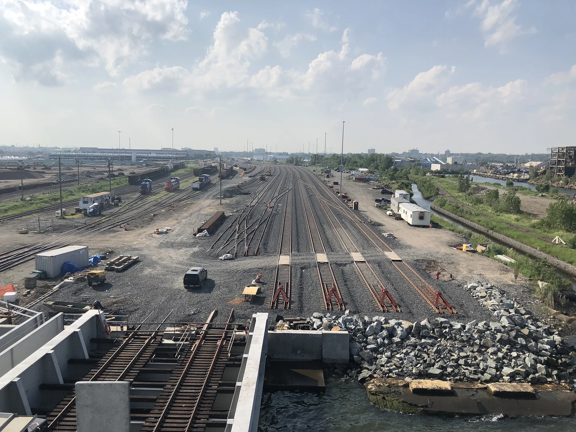 Removed 26,300 LF of existing track, and forty-seven track turnouts; constructed 53,500 LF of new track, forty-two turnouts, twenty-four crossovers, and one diamond crossover, all new site drainage, water force mains, an underground compressed air system with compressor sheds, a high mast lighting & camera system with drilled shaft foundations, and three prefabricated office trailers.
