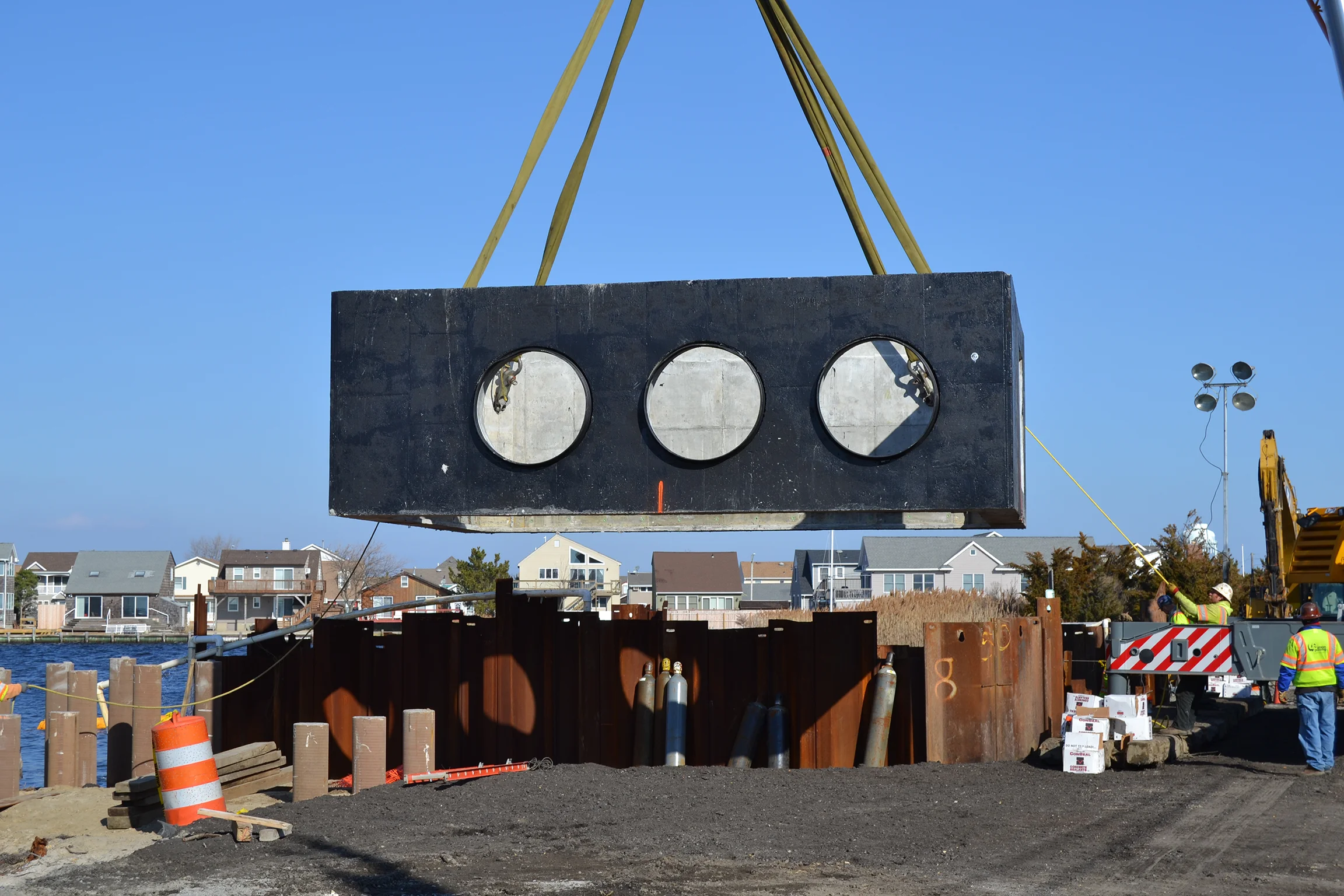 Due to project’s location on a barrier island and in confined residential areas combined with the required depths of excavation, we developed a coordination strategy and implemented a dewatering and cofferdam effort. In addition, the work needed to be performed on an accelerated schedule to minimize impacts to the summer tourists.