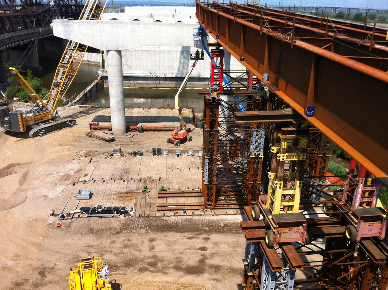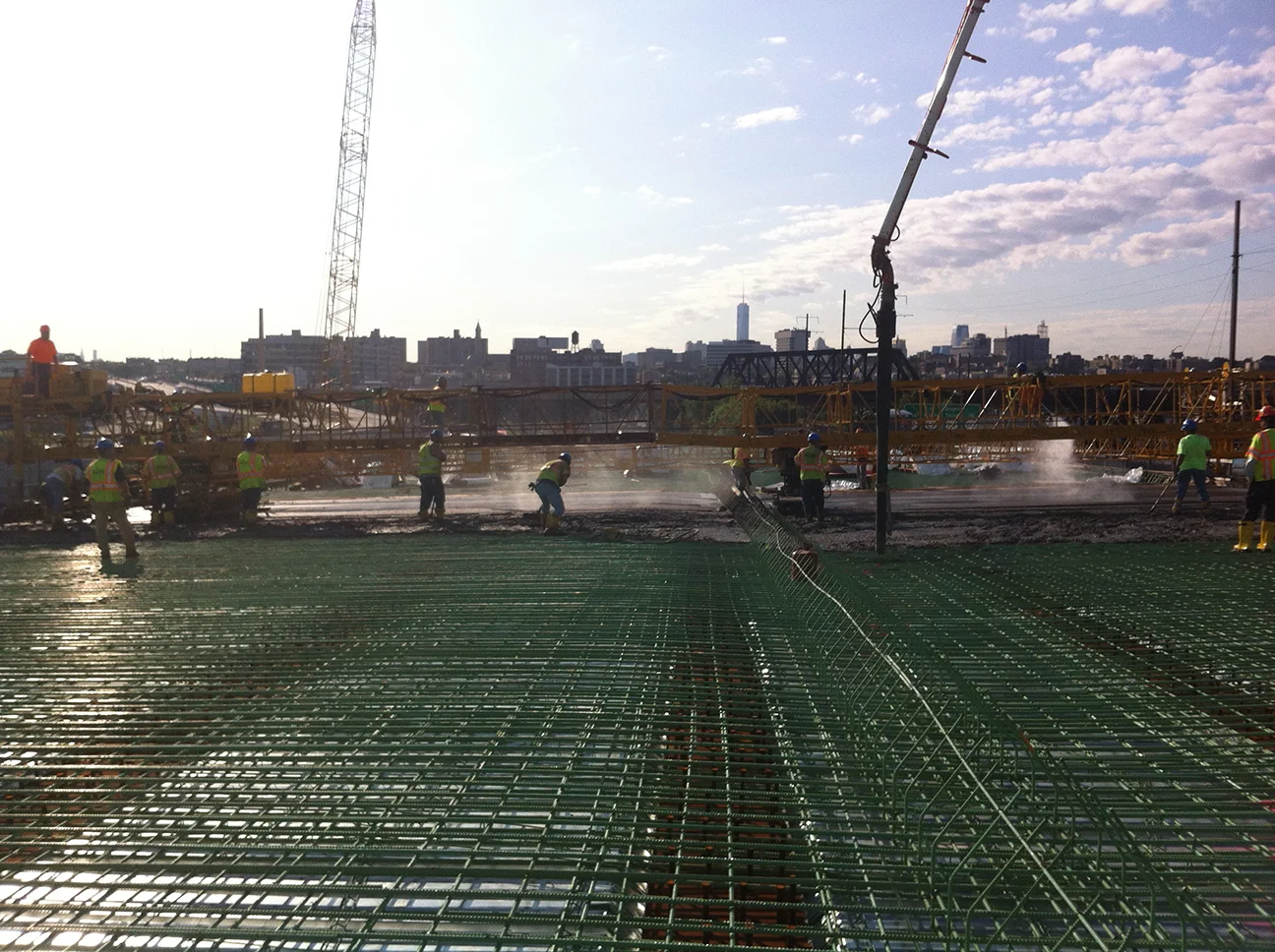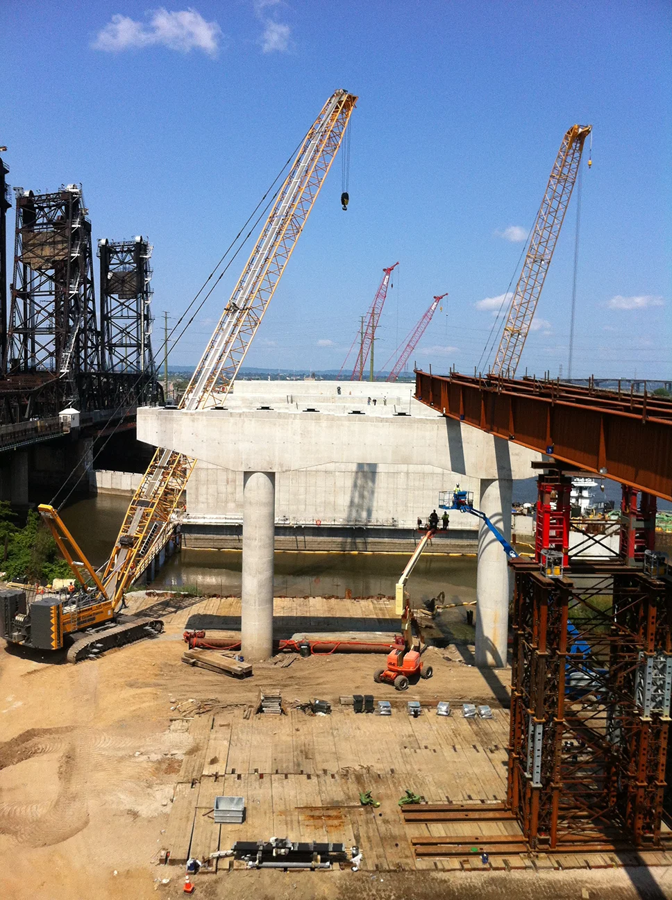 Union Paving constructed the approach spans and ancillary work to complete a new interchange. The work included: road and embankment construction; thirteen cofferdams ranging in depths from twenty-five to thirty-five feet; installing submersible pumps for dewatering and also capturing water for mass concrete cooling; H piles; a new bridge over Hackensack River; retaining walls; sewer, water and electrical utilities; excavation, and disposal of contaminated soil; highway lighting; and landscaping.